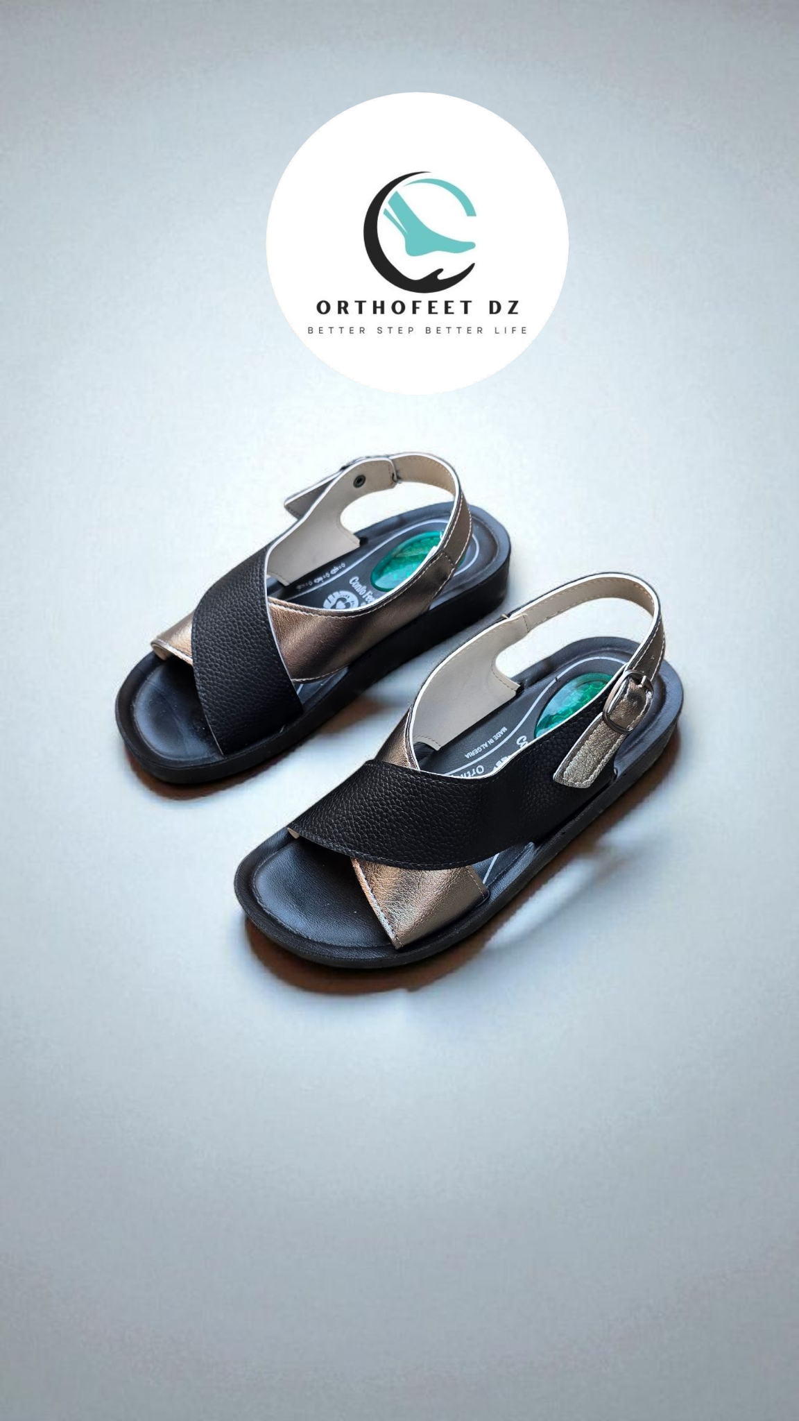 Sandales orthopédiques certifiées – Semelle ultra légère et anti-dérapante, dotée d’un gel silicone arrière pour un amorti optimal et une absorption des chocs. Garantie 300 000 pas pour un confort durable.